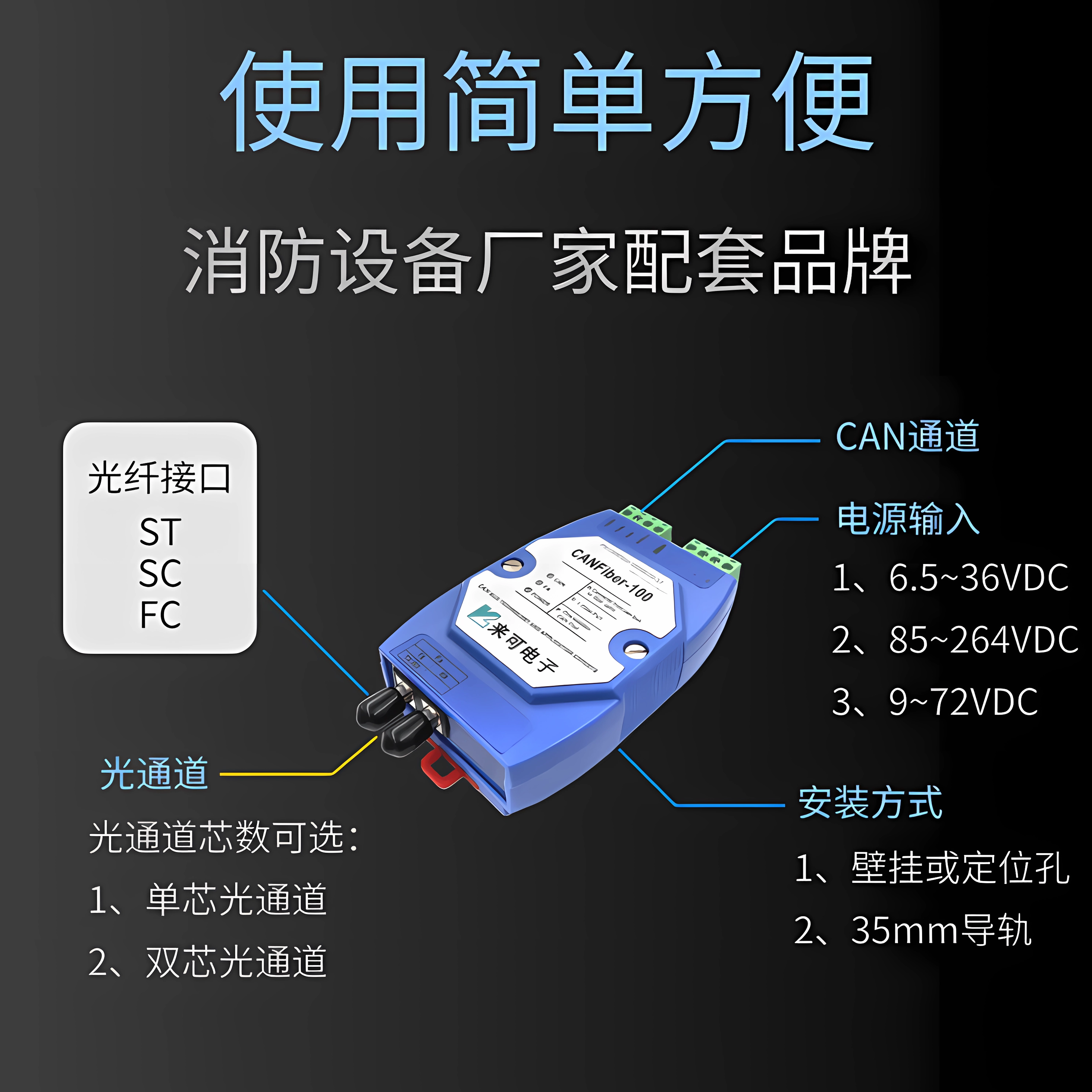 | 光纤接口方式 | 可选ST、SC和FC | |