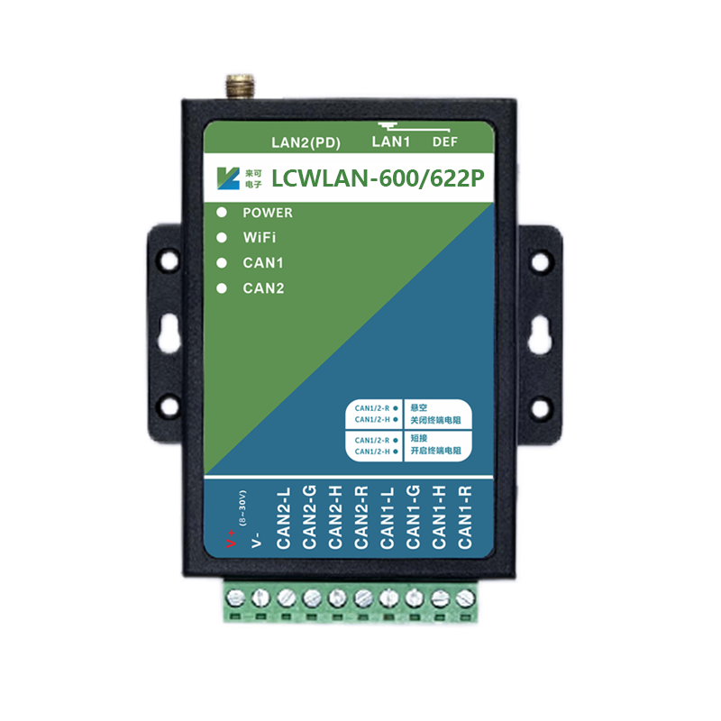 LCWLAN 系列工业级CAN 转WiFi 设备提供一路WiFi通道、两路 10/100M 以太网通道(RJ45)和 1~2 路 CAN通道,实现 CAN 网络与 IP 网络的互联互通。每个通道独立隔离,每路通道采用金升阳电源模块和信号隔离芯片实现 3000VDC 电 气 隔 离 , 电 源 输 入 防 反 设 计 , 支 持DC8~30V 输入;具有优秀的 EMC 性能,符合 CE-EMC、IEC/EN61000-4-2/4/5 标准。